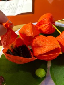 花弁の中に料理入れるなんて。