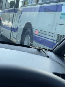 なんとドデカいトンボがフロントガラスの内側を