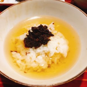 そうしておひつに残ったお米の焦げの部分でお茶漬けをしてフィニッシュ。