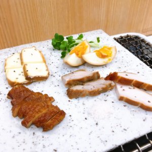 モモの燻製と鶏皮の燻製が
