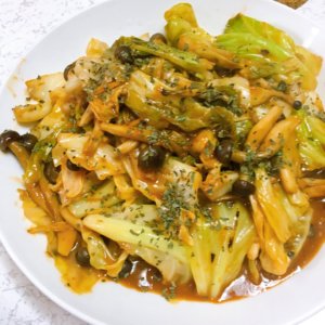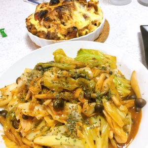 しめじとキャベツを炒めたのであります。