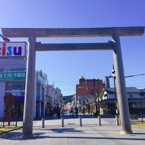 さて第一の鳥居を抜けまして